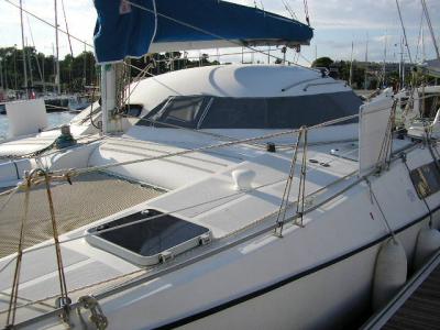 - Vends Outremer 40 version Grand Roof de 1990, 1 moteur Solé Diesel 28CV de 2007 (438 h), 1 moteur Perkins Perama 20CV diesel de 1993 (1387 h), 2 cabines simples arrière, 2 cabines doubles, pointes avant aménagées, 1 SDE, 1 WC, dessalinisateur Dessalator 50L/H, réfrigérateur de 2000, four, réchaud 2 feux Eno Inox, Grand voile Full Batten, génois sur enrouleur Profurl N42, tourmentin, spi symétrique avec chaussette, lazy-bag et jack de 2008, GPS traceur couleur, centrale de navigation ST 60, BLU émettrice réceptrice, radar, pilote automatique ST 4000gp sur vérin, VHF, chargeur de batterie répartiteur 20Ah, panneaux solaires 2X110W, éolienne, alternateur, convertisseur 12/220V, taud de soleil, bossoirs, survie de 2003, guindeau électrique 1000W, annexe rigide 8 places 3.60m + HB 18CV. POSSIBILITE PLACE DE PORT. Visible 66. Prix 98000€ TTC Tél 06.32.67.89.07 ou bleumarinemediterranee@hotmail.fr Site: www.bleu2m.net[URL]http://www.bleu2m.net[/URL]